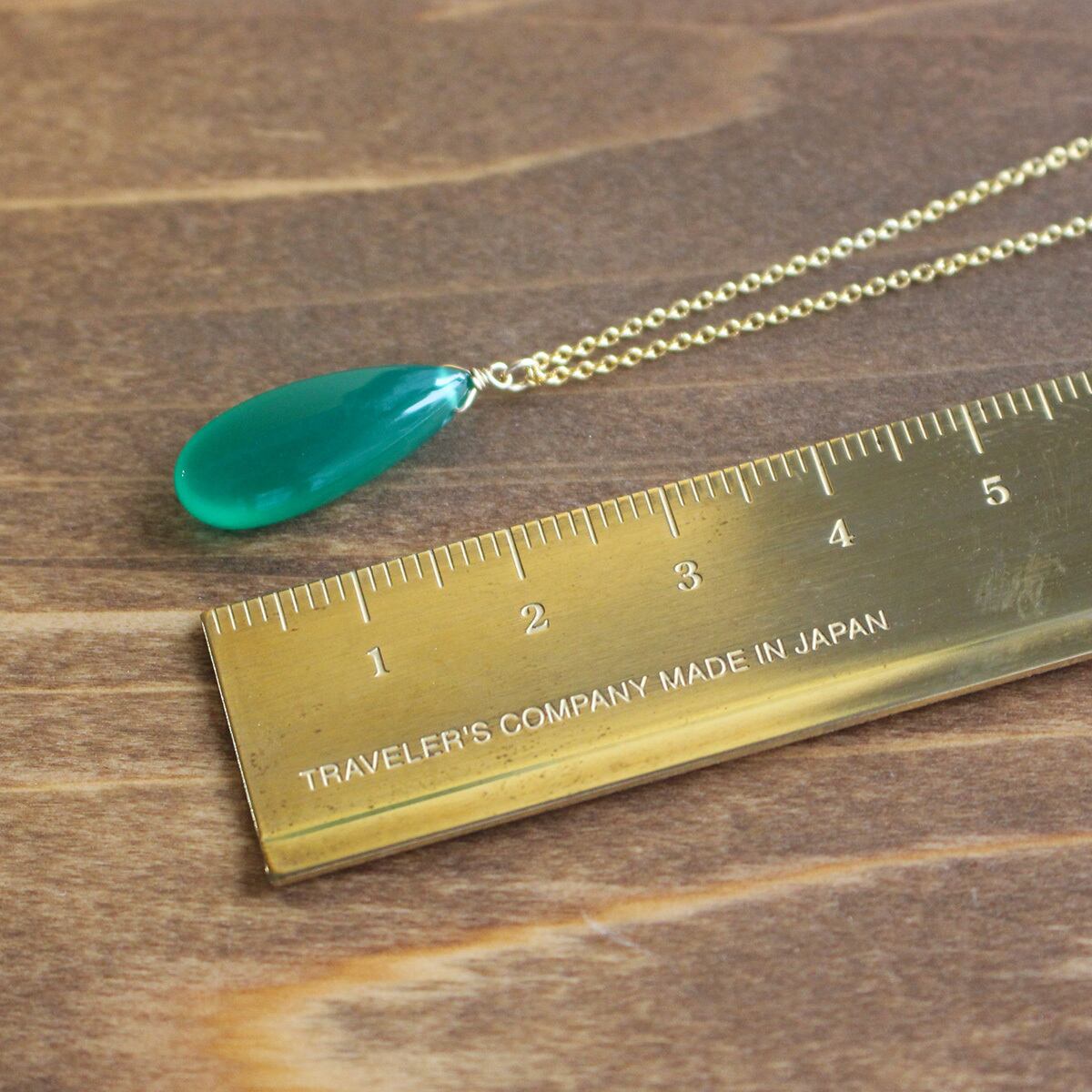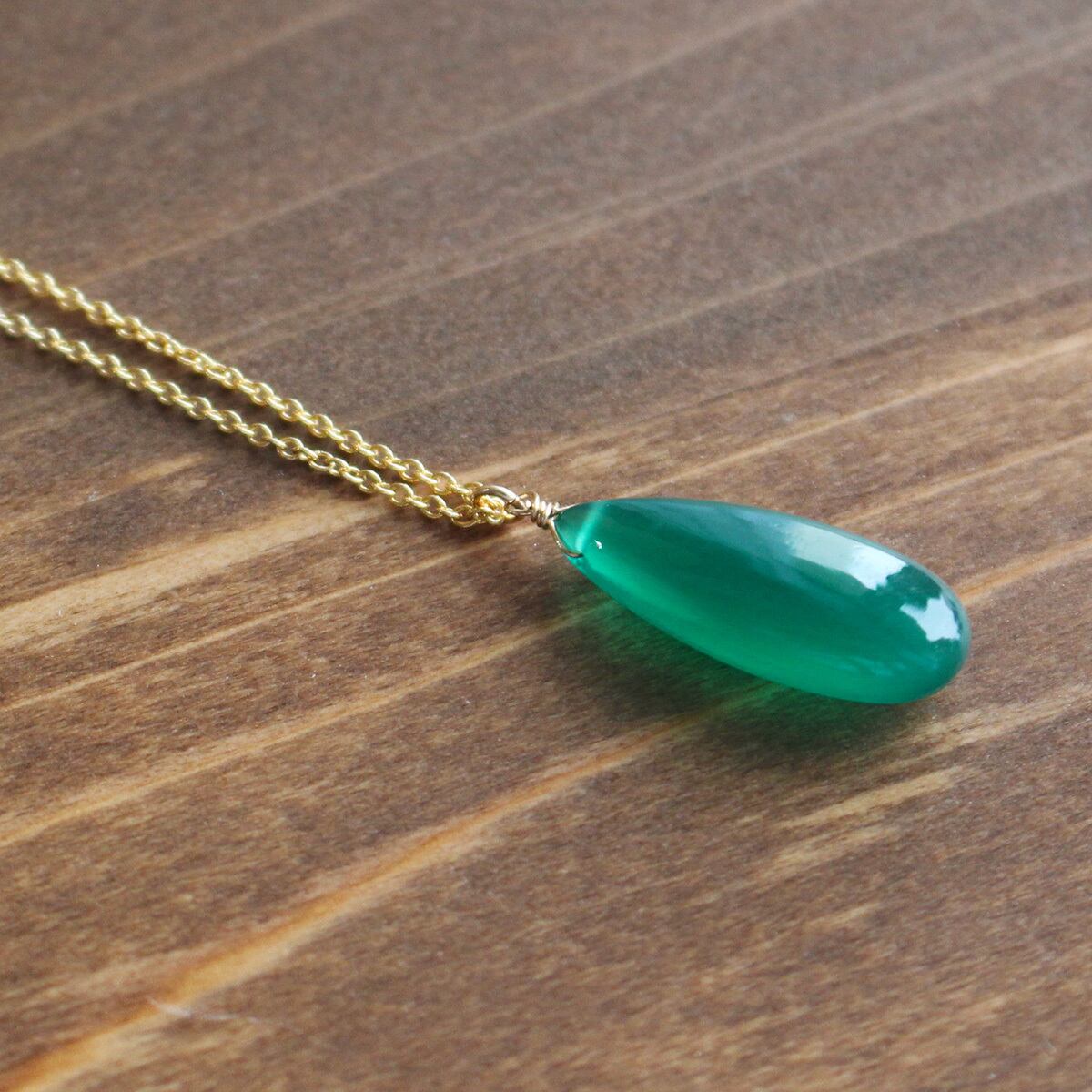 ✨鮮烈グリーンに釘付け✨ グリーンオニキス<大粒ペアシェイプ>のペンダント(K14GF)