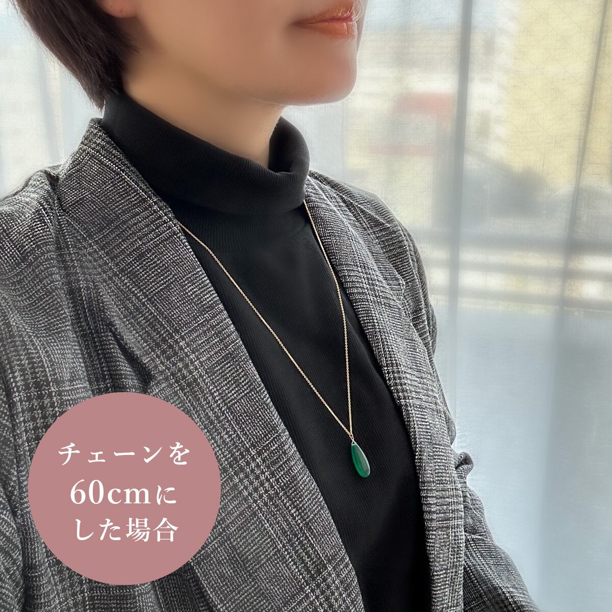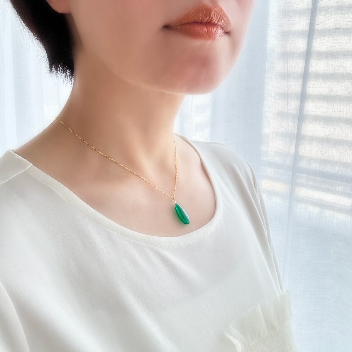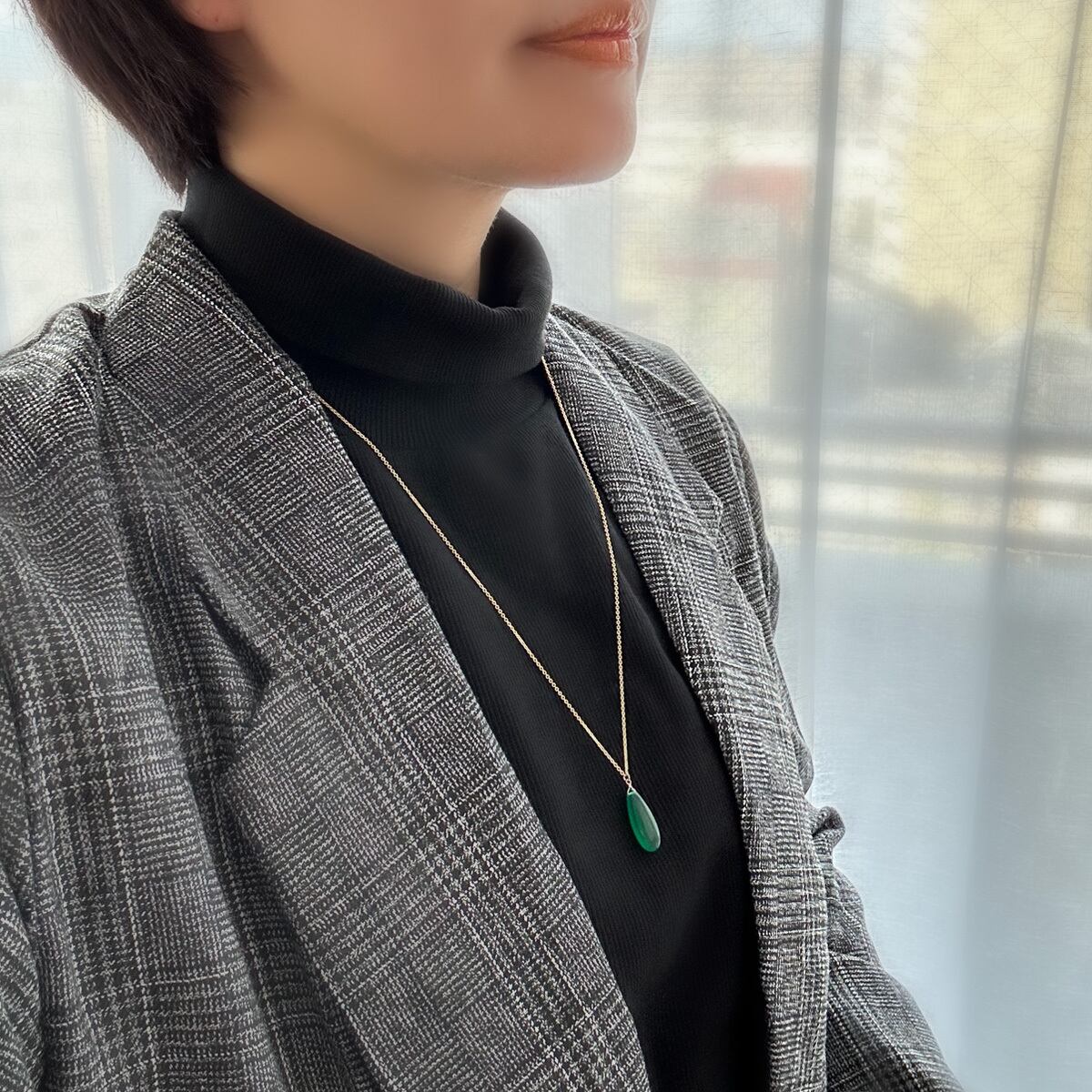 ビビッドなグリーンが目を引く大粒のグリーンオニキスをペンダントにしました。