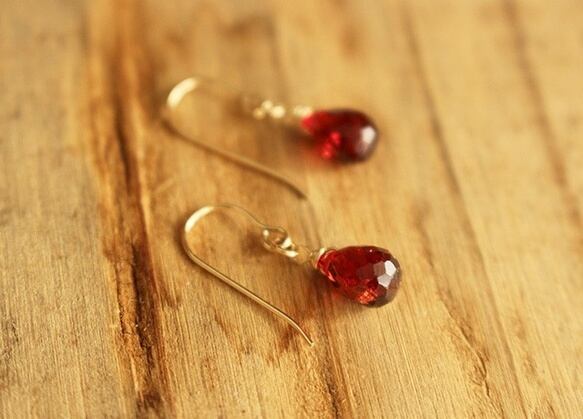 【アウトレット】モザンビークガーネット<ドロップ・ブリオレット>のピアス(K14GF)