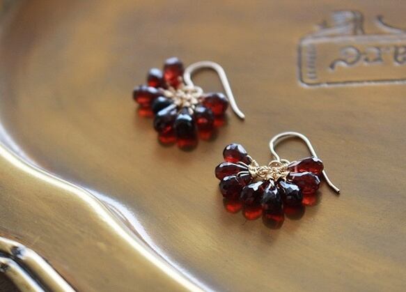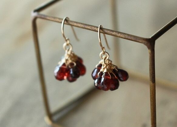 モザンビークガーネット【S】の小花ピアス(K14GF)