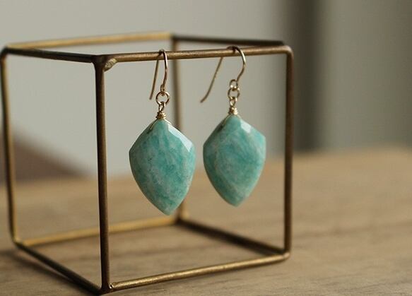 爽やかなブルーグリーンと個性的なアローヘッド(鏃)型が目を引くアマゾナイト。