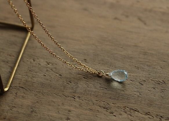スカイブルートパーズ<ドロップカット>のネックレス(14KGF)