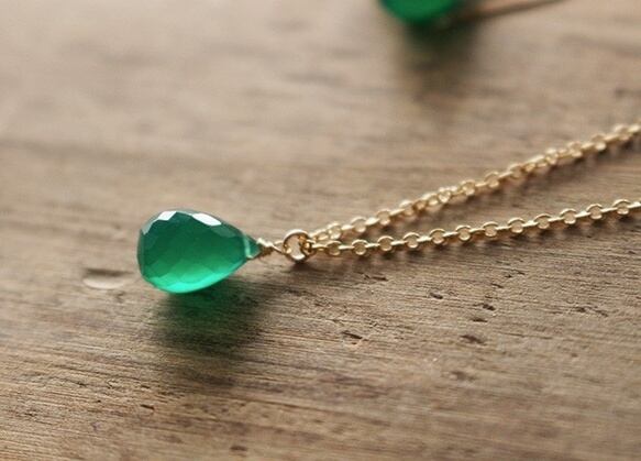 グリーンオニキス<ドロップ・ブリオレット>のネックレス(14KGF)