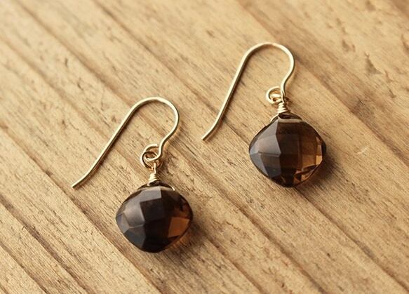 シックなブラウンで、洗練された輝きを放つスモーキークオーツをピアスにしました。