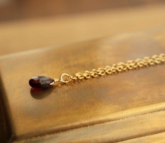 深みのあるワインレッドが美しいロードライトガーネットをネックレスにしました。