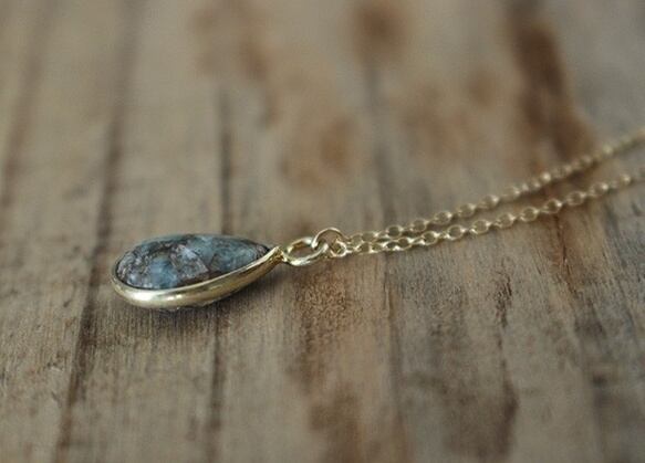 コッパーアマゾナイト<ペアシェイプ枠留め・AAA>のネックレス(K14GF)