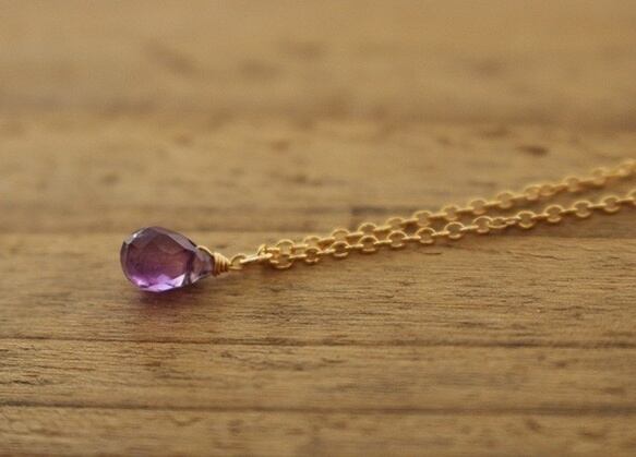 アメジスト<ドロップ・ブリオレット>のネックレス(K14GF)