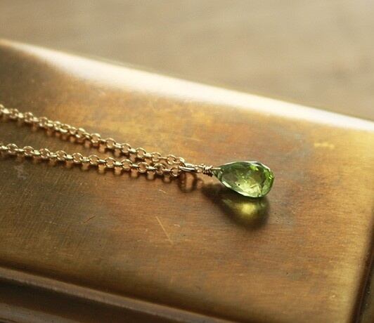 【アウトレット】ペリドット<ドロップカット>のネックレス(K14GF)