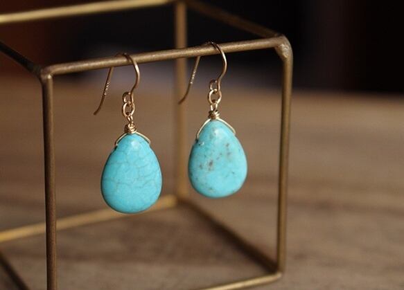 マグネサイトターコイズのピアス(K14GF)