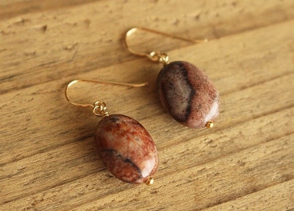 ころっとしたオーバル型が可愛らしいレッドピクチャージャスパーをあしらったピアスです。