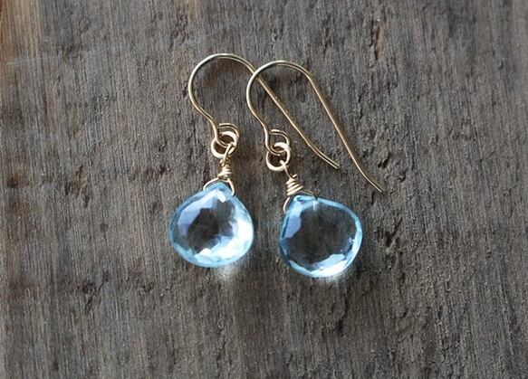 澄んだ水色が美しく、青空を閉じ込めたようなスカイブルートパーズをピアスにしました。