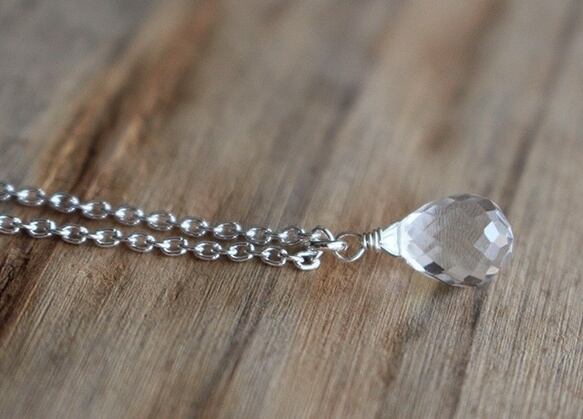 透き通ったブリオレットカットのクォーツ(水晶)を使った、とても涼しげなネックレスです。