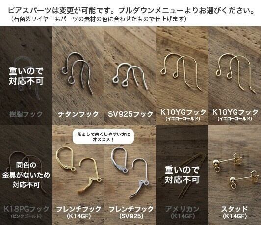 ピアスパーツはイヤリングやK14GFフック以外のタイプに変更可能です。