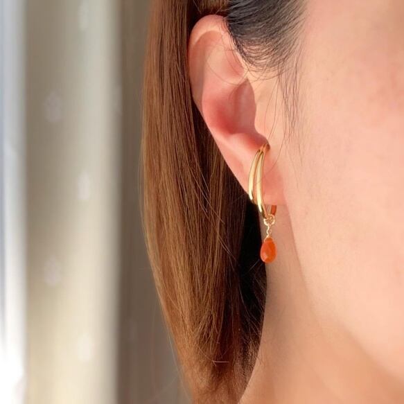 見ているだけで元気になれそうなかわいいカーネリアンをイヤーカフにしました。