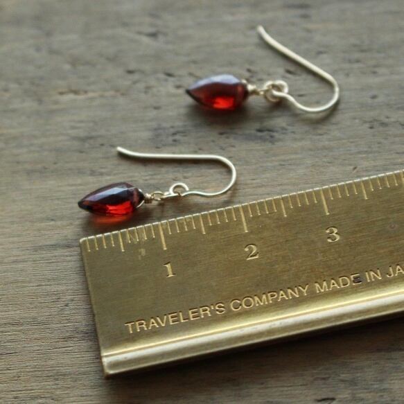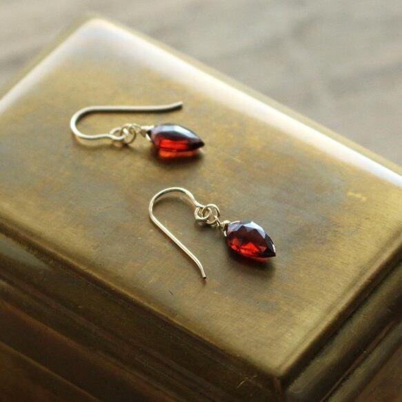透き通った深紅や美しいモザンビーク産のガーネットをシンプルなピアスにしました。