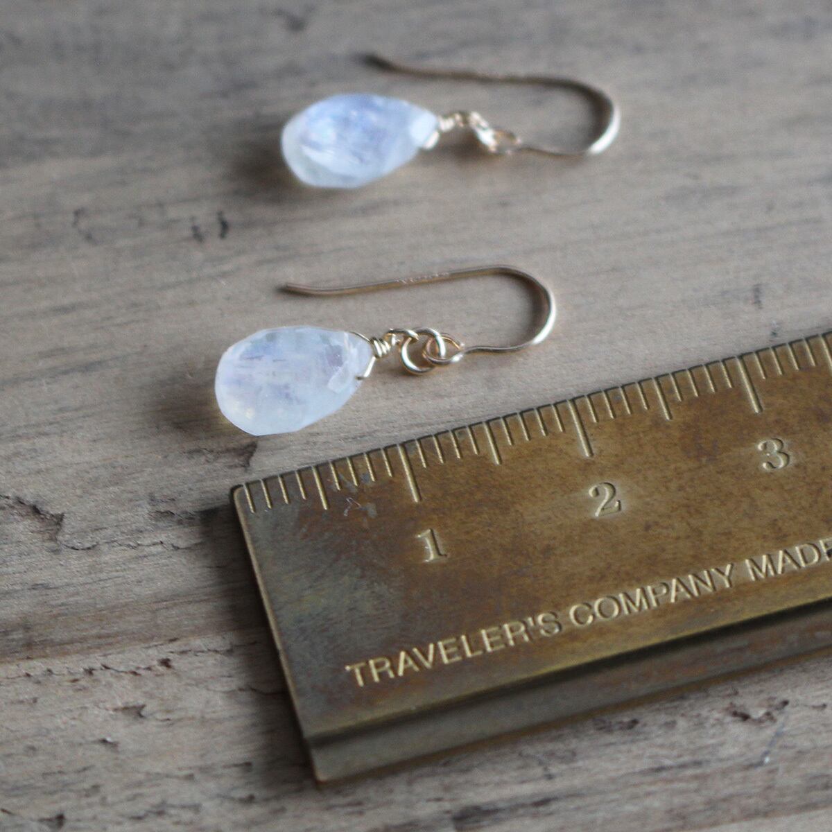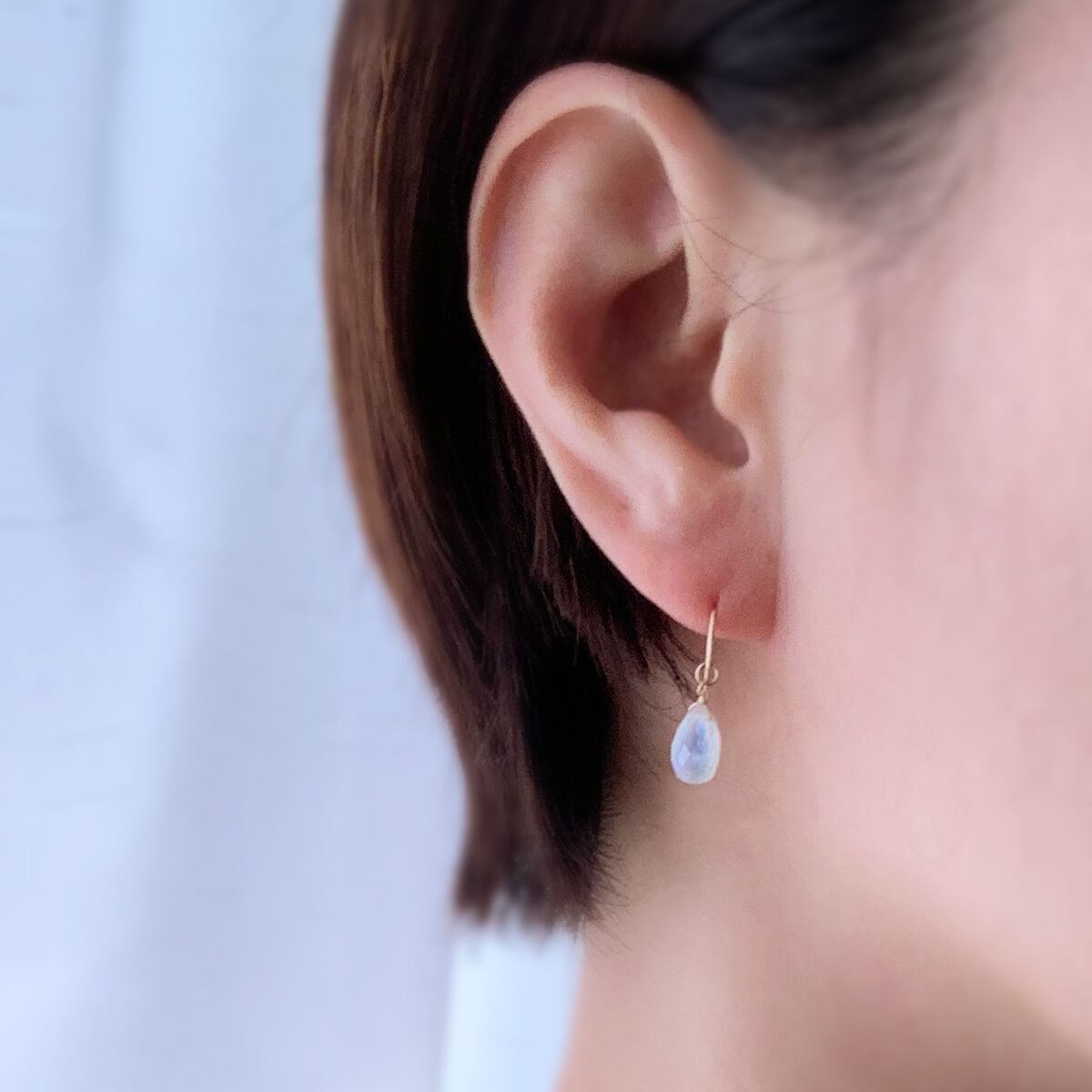虹色のシラーが美しい、6月の誕生石・レインボームーンストーンをピアスにしました。