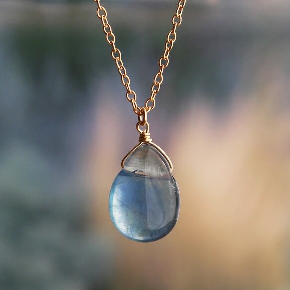 ブルーフローライト<大粒・プレーン>のネックレス(K14GF)