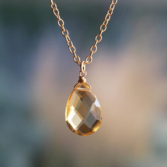 11月誕生石・シトリン<宝石質・ブリオレットカット>のネックレス(K14GF)