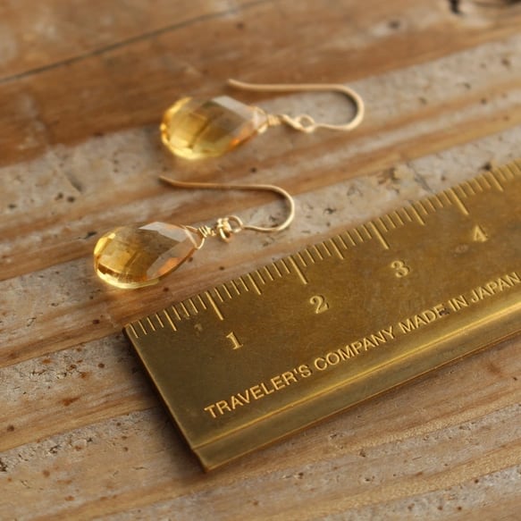 11月誕生石・シトリン<宝石質・ブリオレットカット>のピアス(K14GF)