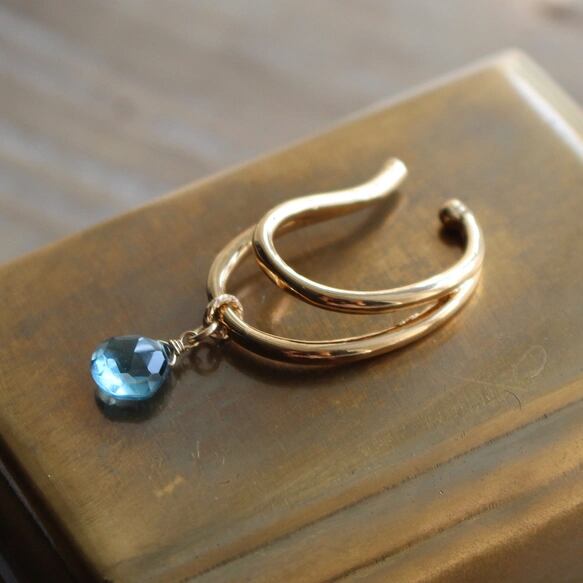 11月誕生石・ロンドンブルートパーズ<ミディアムカラー>のイヤーカフ