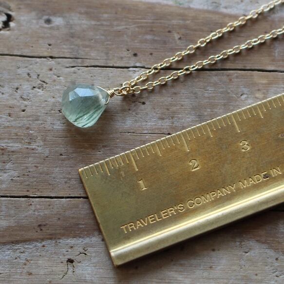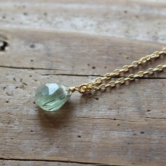 ほんのり透け感のあるクォーツにグリーンの針が入った、個性的で魅力的な石、グリーンルチルクォーツをネックレスにしました。