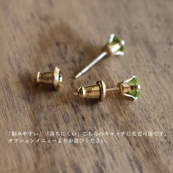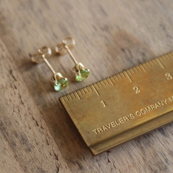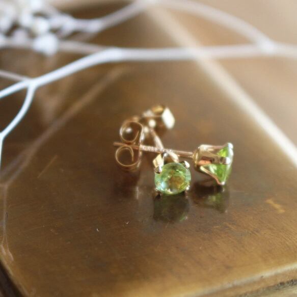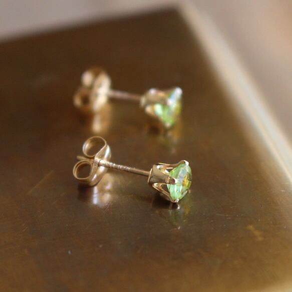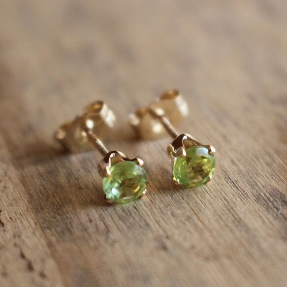 8月の誕生石・ペリドットをシンプルなスタッドピアスにしました。