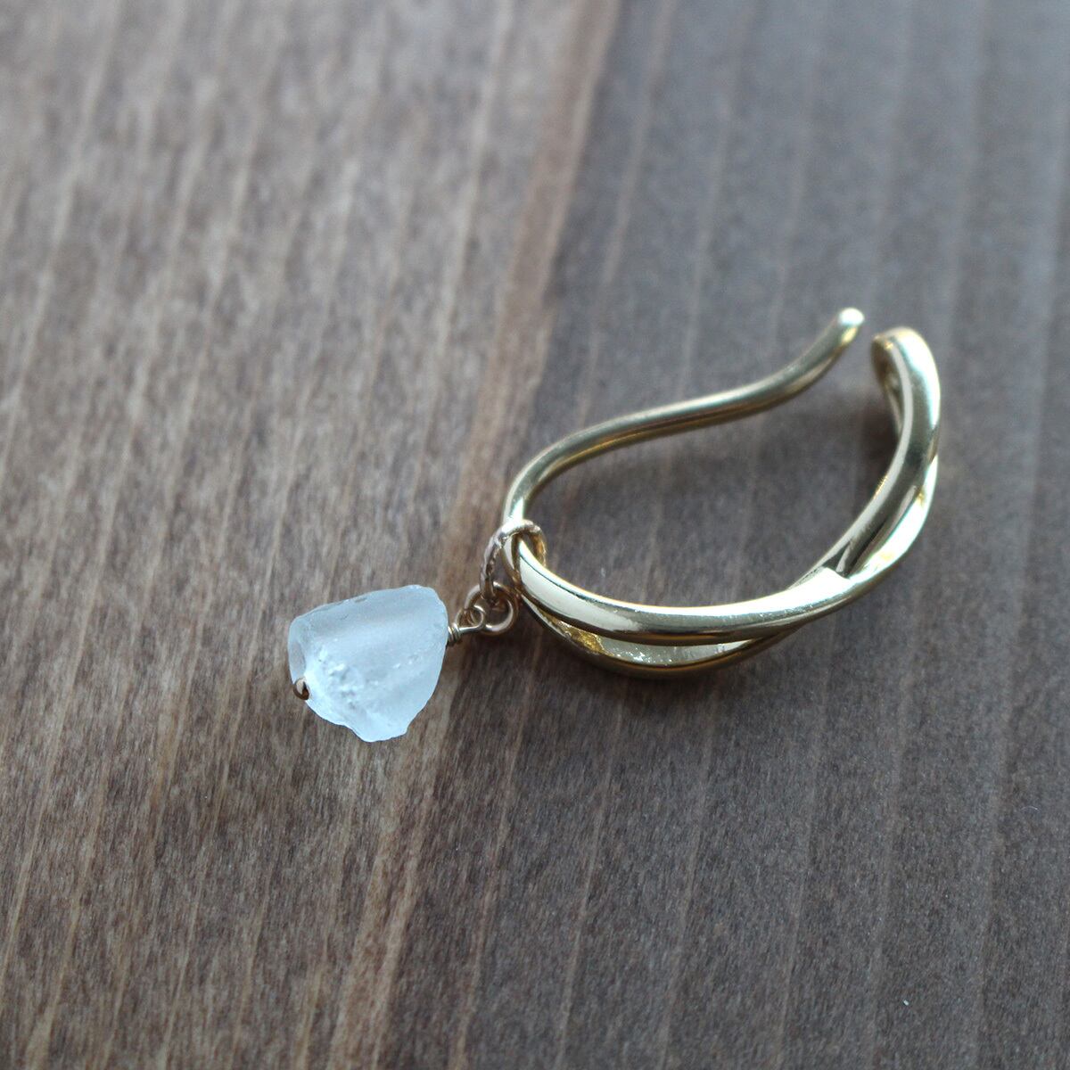 原石の粗削りな形状がシャビーで個性的な、ブルートパーズの原石をイヤーカフにしました。