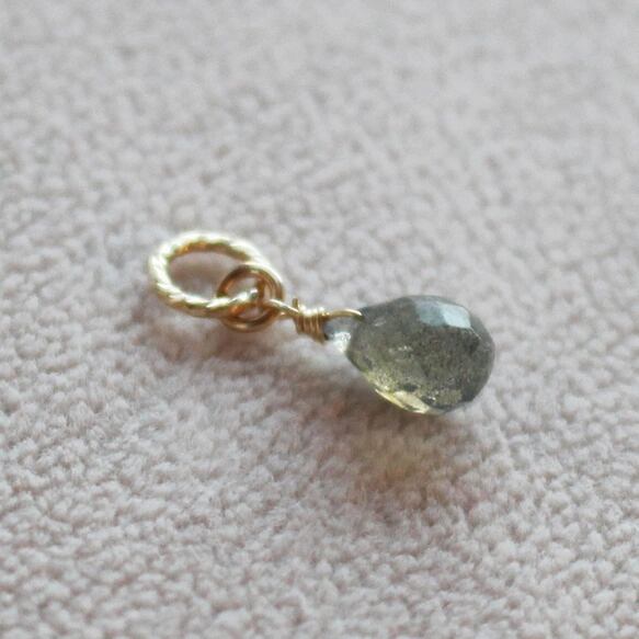 ラブラドライト<ドロップ・ブリオレットカット>のチャーム(K14GF)